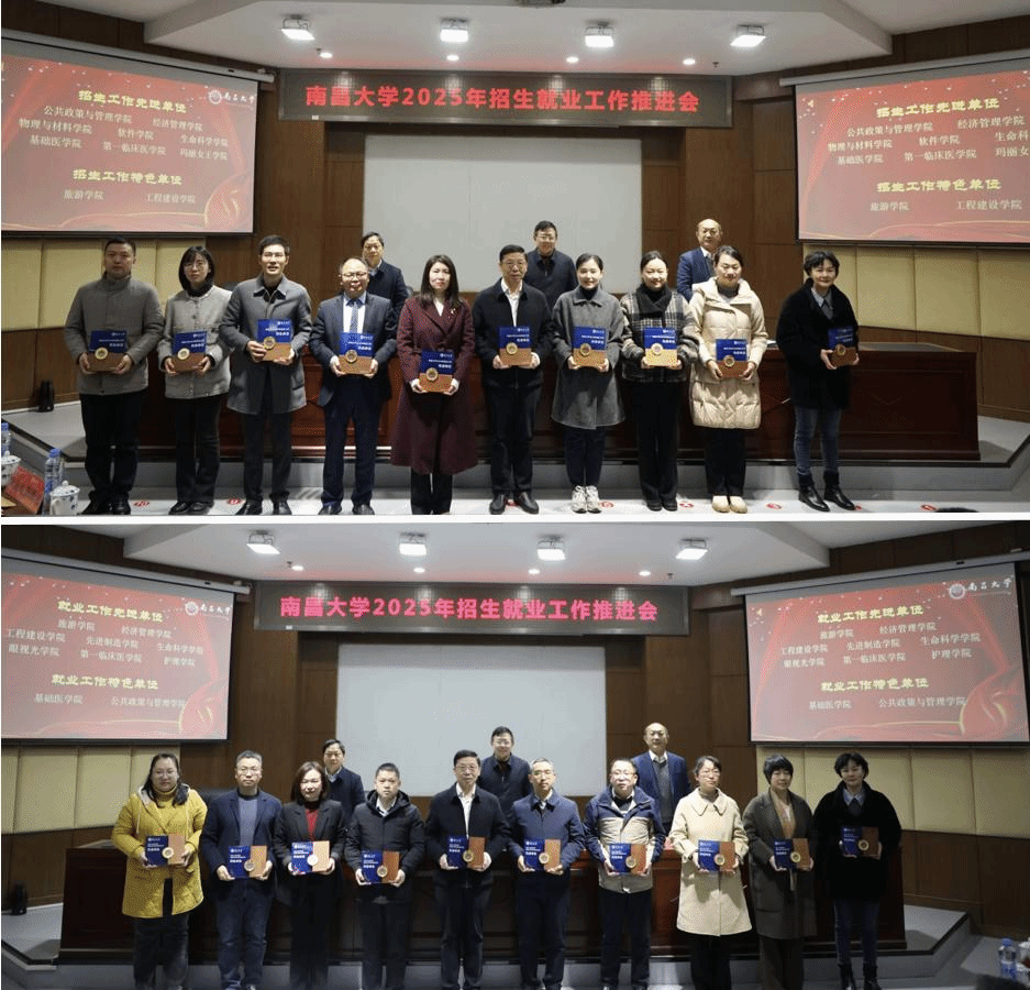 葛剛宣讀《關于表彰南昌大學2024年招生就業工作先進單位和先進個人的決定》。此次獲得表彰的單位有:公共政策與管理學院、經濟管理學院、物理與材料學院、軟件學院、生命科學學院、基礎醫學院、第一臨床醫學院、瑪麗女王學院、旅游學院、工程建設學院、先進制造學院、眼視光學院、護理學院;138人獲評招生、就業工作先進個人。