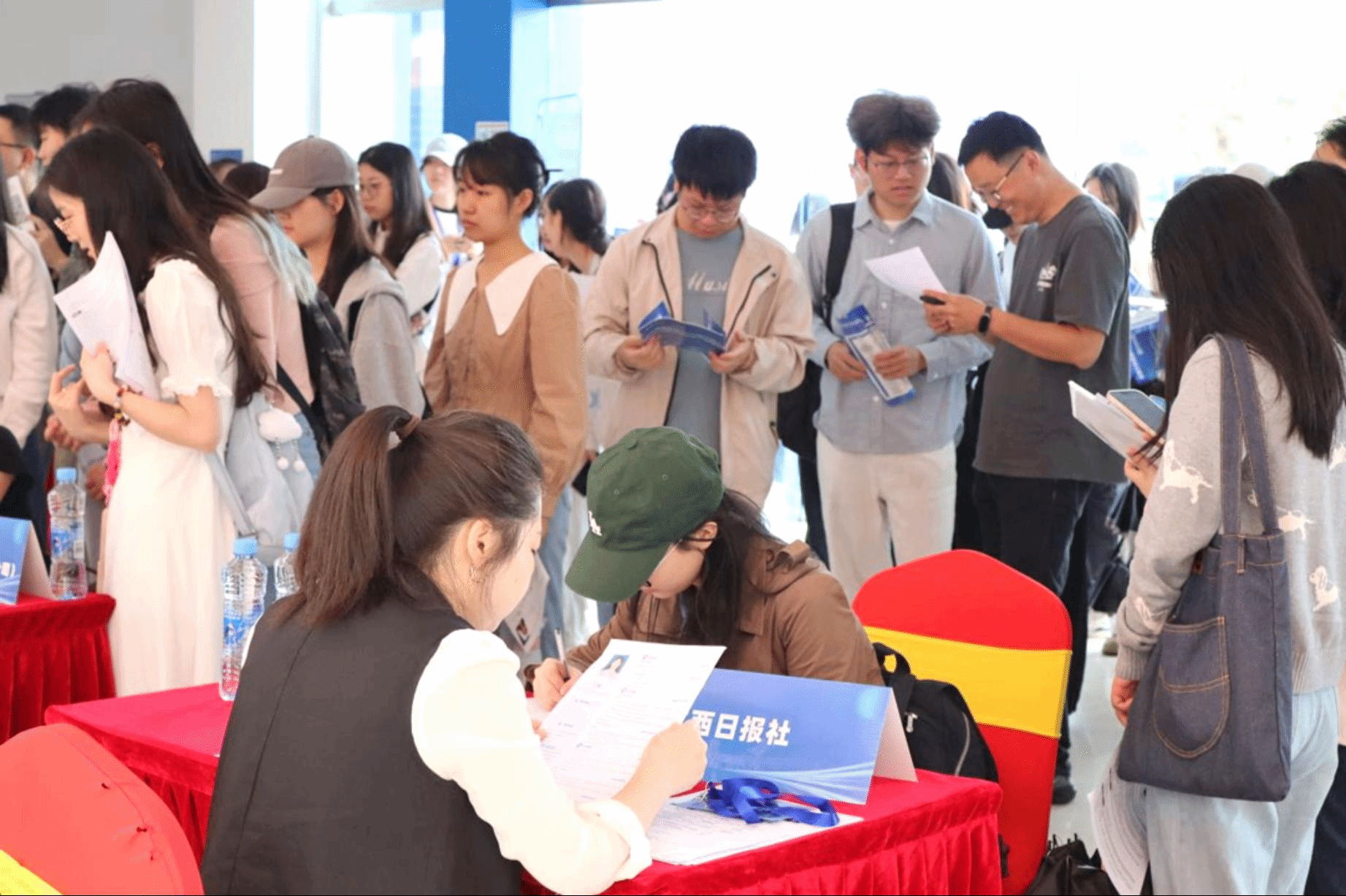 招聘會現場人頭攢動、氣氛熱烈。畢業生們穿梭于各展位前,認真查看展板上的招聘信息,挑選著自己心儀的崗位。多家企事業單位展位前排滿了前來投遞簡歷和咨詢的學生。據了解,本次招聘會吸引了32家企事業單位參與,崗位涵蓋傳媒、通訊、教育等多個領域,崗位種類豐富多樣,充分滿足不同專業學生的求職需求。