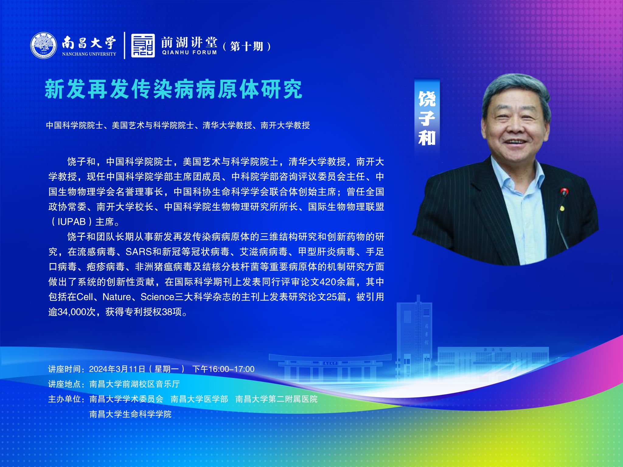 時(shí)間 2024年3月11日(星期一) 地點(diǎn) 南昌大學(xué)前湖校區(qū)音樂(lè)廳