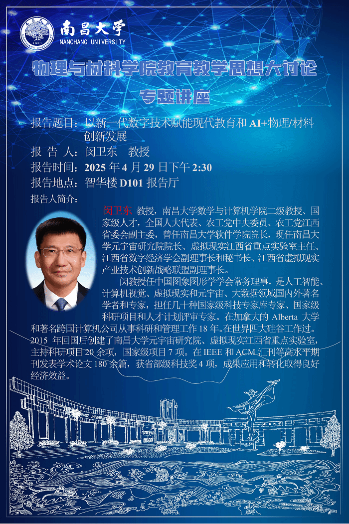 物理與材料學院教育教學思想大討論專題講座--閔衛(wèi)東教授《以新一代數(shù)字技術賦能現(xiàn)代教育和AI+物理/材料創(chuàng)新發(fā)展》