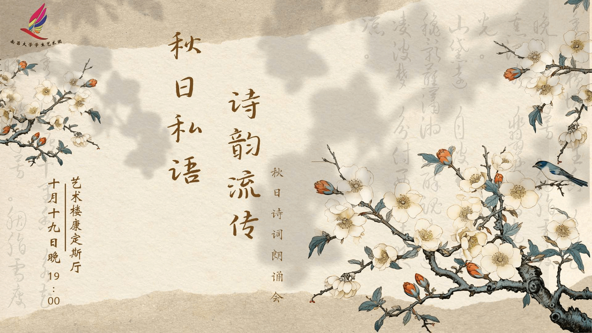 金秋十月,千湖之畔,當秋意與詩詞相遇,會碰撞出怎樣的火花?10月19日晚19:30,藝術樓康定斯廳,讓我們一起相約南昌大學學生藝術團“秋日私語,詩韻流傳”詩詞朗誦會,在這里,你將聽到李白的豪放,杜甫的深沉,蘇軾的豁達,李清照的婉約,快來共赴這場詩意盛會,感受詩詞的魅力,讓我們用詩詞點亮生活,用聲音傳遞情感,我們不見不散!