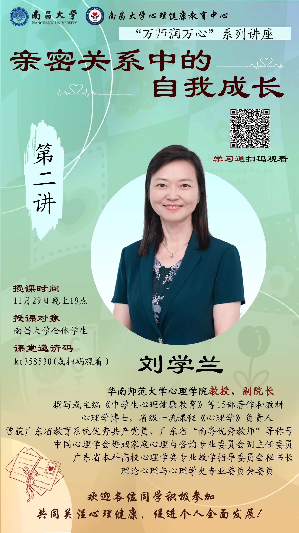 2024年秋季“萬師潤萬心”系列講座第二講預告